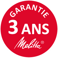 La période de garantie de 3 ans, prend effet à la date d’achat de la machine par l’utilisateur final. La date d’achat de la machine doit être indiquée sur une preuve d’achat. La machine a été conçue et fabriquée pour un usage domestique privé.Pendant la période de garantie, Melitta remédie à tous les défauts de la machine, faisant suite à un défaut de matériel ou de fabrication, et procédons, selon notre choix, à la réparation ou au remplacement de l’appareil. Les pièces remplacées sont alors notre propriété. Sont exclus de la garantie les défauts liés à un branchement non conforme, à une manipulation non-conforme ou à des tentatives de réparation par des personnes non autorisées. Il en va de même en cas de non-respect des consignes d’utilisation, de maintenance (ex: entartrage) et d’entretien, ainsi qu’en cas d’utilisation de consommables (produits de nettoyage, de détartrage ou filtre à eau) non conformes aux spécifications. Les pièces d’usure (telles que les joints et vannes par ex.), les pièces facilement cassables comme le verre, et les dégâts dus à la présence de corps étrangers sont également exclus de la garantie. |