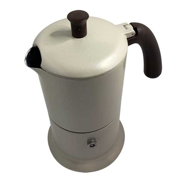 Compatible avec tous les feux, cette cafetière permet de préparer un café riche et aromatique en toute simplicité. Sa finition couleur sable lui confère un look moderne et discret, contrastant avec le marron de la poignée et du bouton.