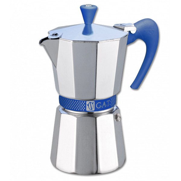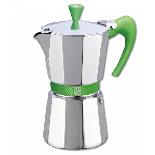 Cette cafetière Moka en aluminium de fabrication italienne possède l'anse, la bague et le bouton en couleur. Ce dernier est réhaussé d'un effet diamant pour donner une touche d'originalité.
