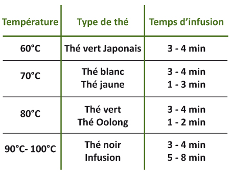 Température et temps d'infusion en fonction du type de thé :