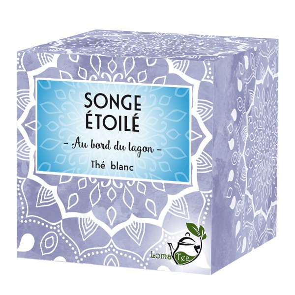Le thé blanc est peu oxydé (à peine 12%) ce qui lui confère de jolies feuilles, et notre songé étoilé est agrémenté de vanille, de papaye, de mangue, poire et de poivre pour apporter suffisamment d'arômes, le tout étant apaisé par les fleurs de rose et de bleuet, le résultat est étonnant de douceur et de finesse.