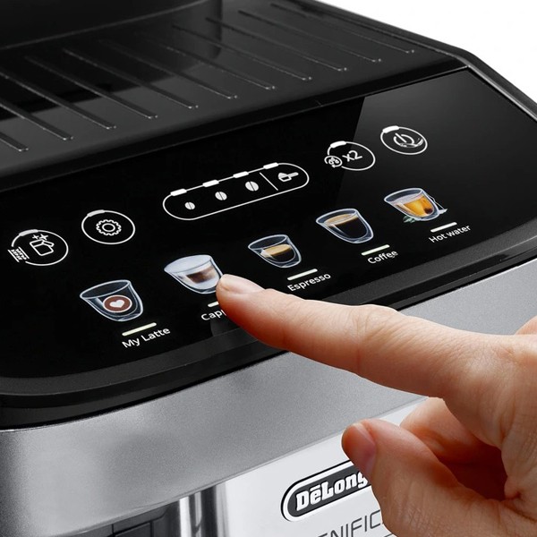 CAFE GRAIN OU MOULU La Magnifica Evo ECAM 290.61.SB est dotée d'un bac à grains pouvant contenir jusqu'à 250g de café et d'une trappe à café moulu, que vous pouvez utiliser par dose unique afin de préparer un déca ou autre café selon vos souhaits. |