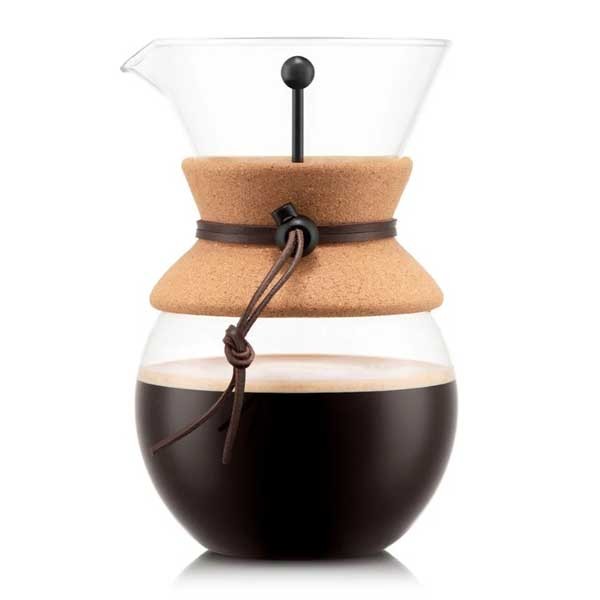 Verre borosilicate, liège et cuir, filtre permanent finement maillé, 1 L soit 8 tasses