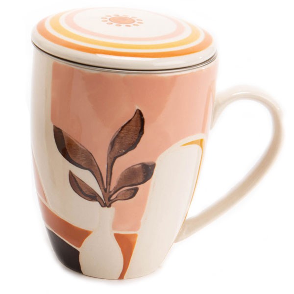 Ce mug est peint à la main ainsi que son couvercle, avec des couleurs chaudes et son décor floral. Le filtre en inox permet d'infuser le thé en vrac.