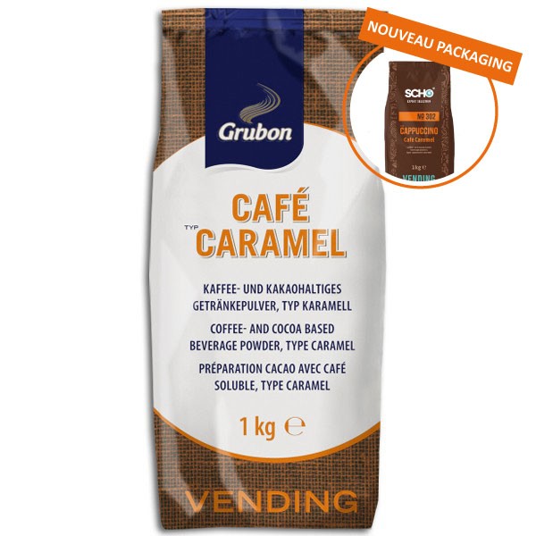 Cette préparation cacao avec café soluble aromatisé au caramel, sera apprécié à toute heure de la journée pour offrir une alternative au café.
