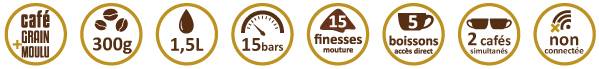 - Possibilité de préparer simultanément 2 cafés en appuyant simplement 2 fois sur la boisson que vous souhaitez.