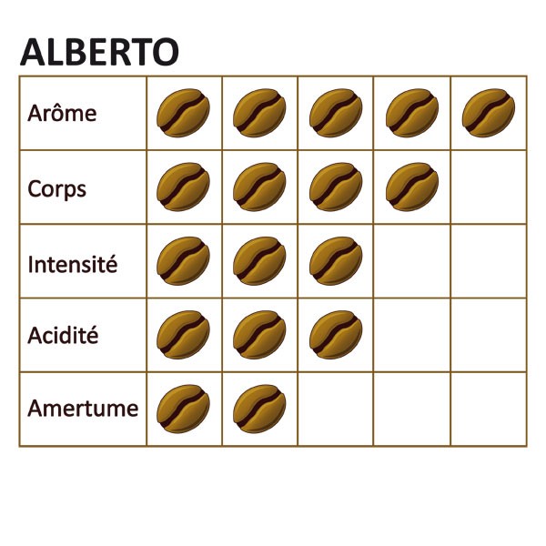 Caractéristiques : Mélange d'Arabica et de Robusta (70/30). Un Café puissant et onctueux, façon "bar", long en bouche.